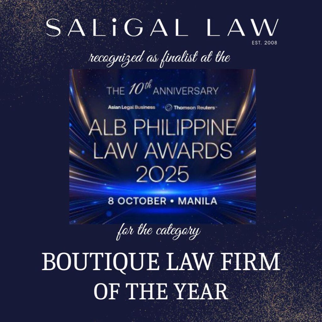 SALiGAL LAW has been recognized as Finalist for Boutique Law Firm of the Year at the Asian Legal Business (ALB) Philippine Law Awards 2025!